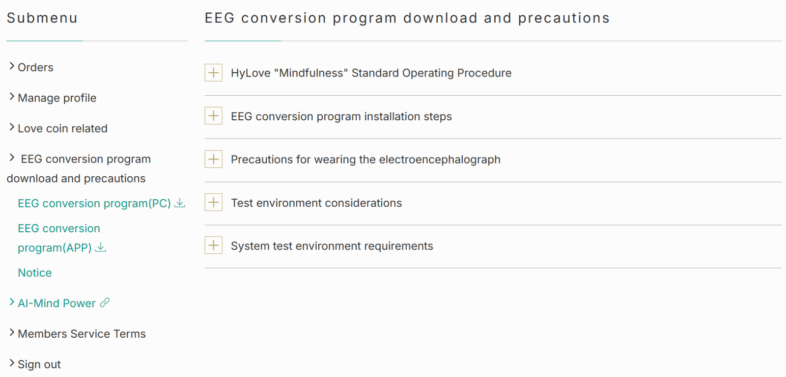- Log in as a member from the official website of HyLove → Go to "Member" → Click "EEG conversion Program Download and Precautions" on the left menu → "Download EEG Conversion Program", open the conversion program and the brainwave device, and combine the two Connect via Bluetooth.