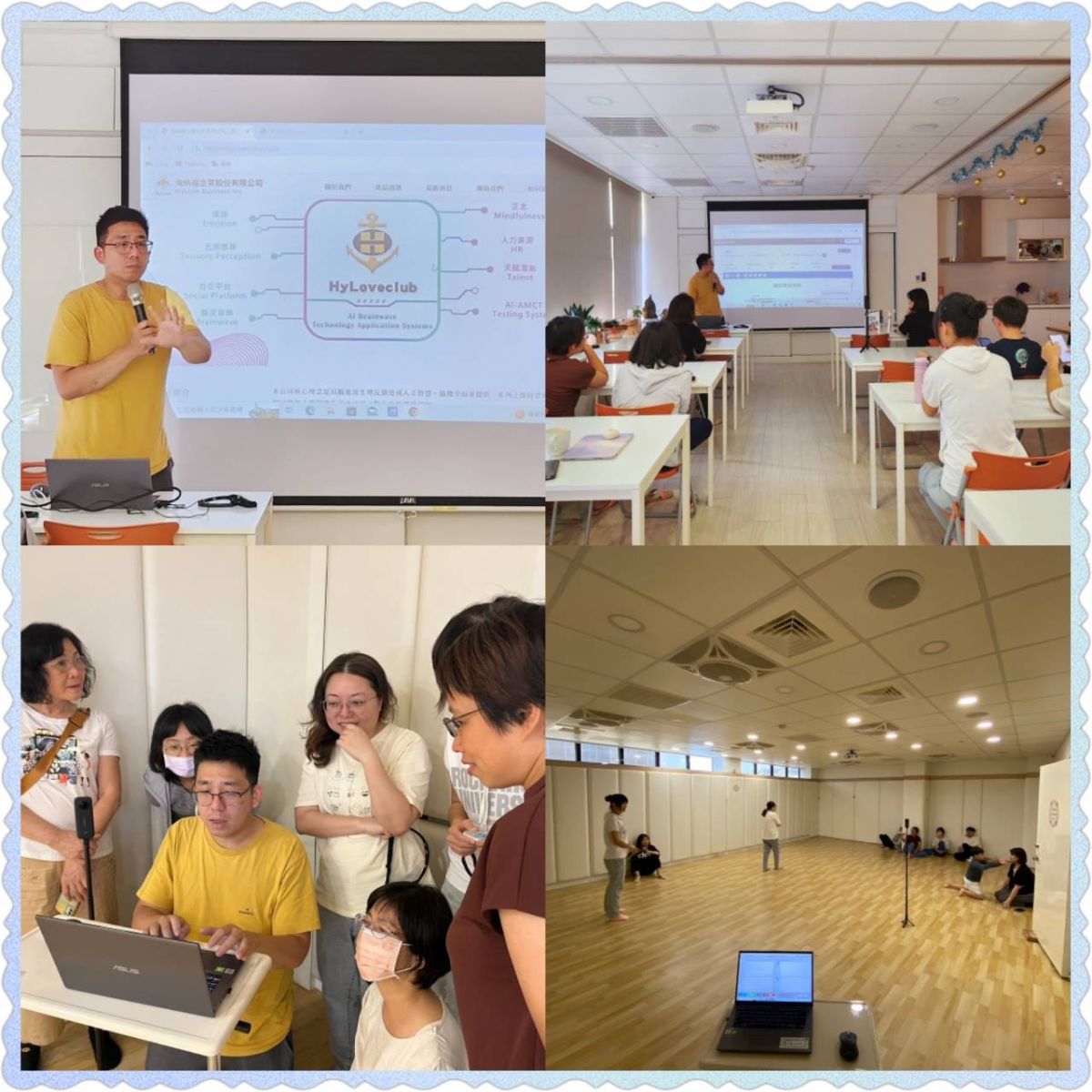 在此次演講過程中利用腦波技術來展示冥想、情緒及其他身心靈實踐過程中的腦波活動,通過受測者的腦波圖來解釋受測者當前的情緒隨時觀看自身腦波的狀態是非常專業,而在動態靜心律動的過程中,大腦的腦波還能夠呈現出靜心的狀態,這是非常特別的體驗。