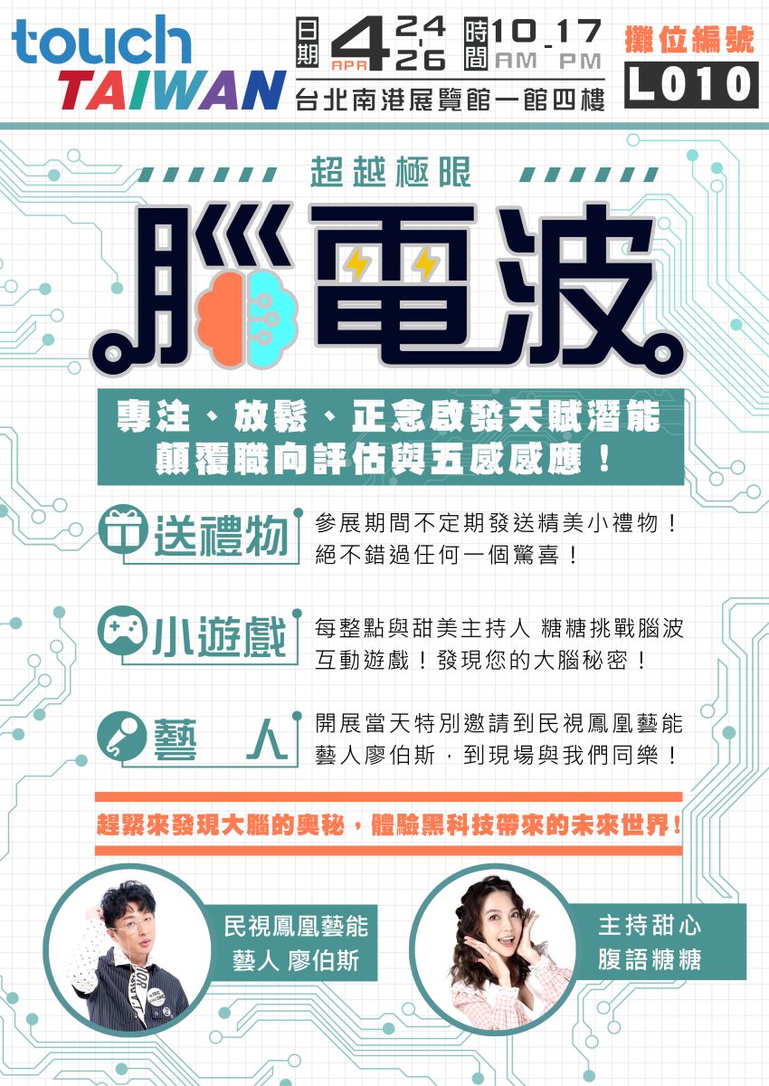 展覽期間,您將有機會與知名甜美主持人糖糖近距離互動,感受腦波科技的神奇力量,並有機會獲得精美小禮物!